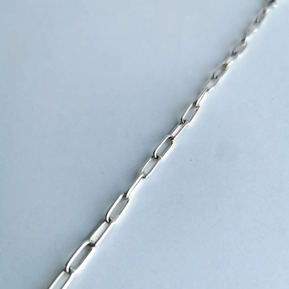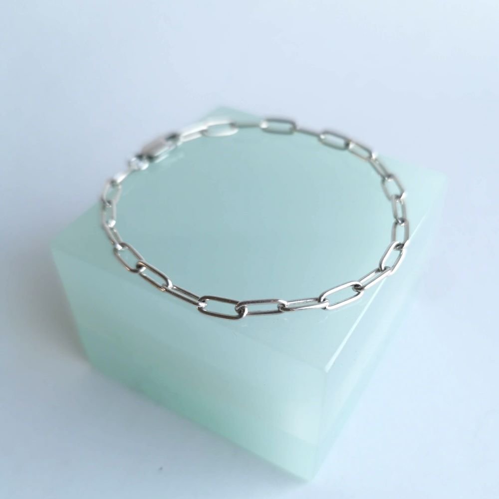 A stylishly simple chain link bracelet made out of sterling silver.