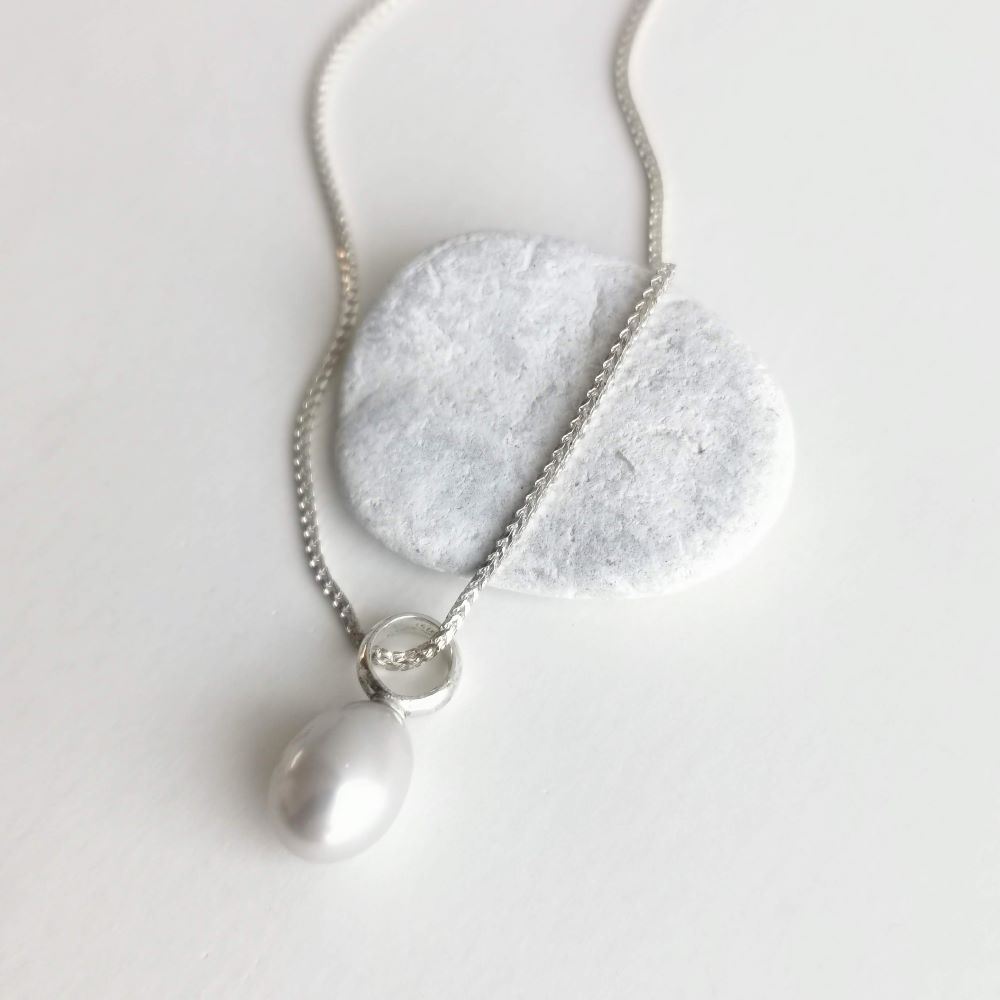 PEARL DROPLET, silver necklace with freshwater pearl hanger